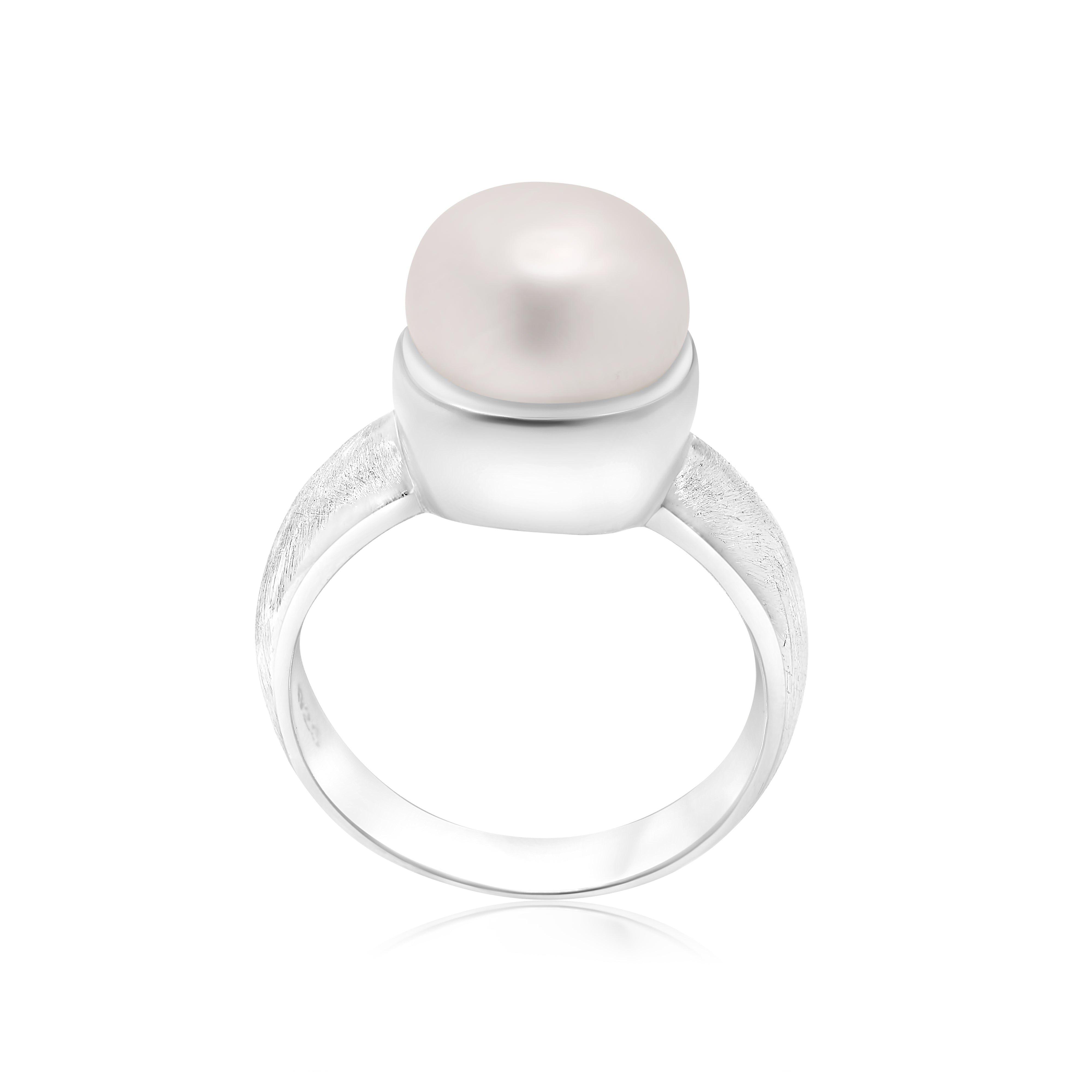 Each ring is meticulously handcrafted, highlighting the soft glow of the pearl against the matte texture of the brushed silver. The result is a stunning statement piece that’s both sophisticated and effortlessly wearable — perfect for everyday elegance or special occasions.
