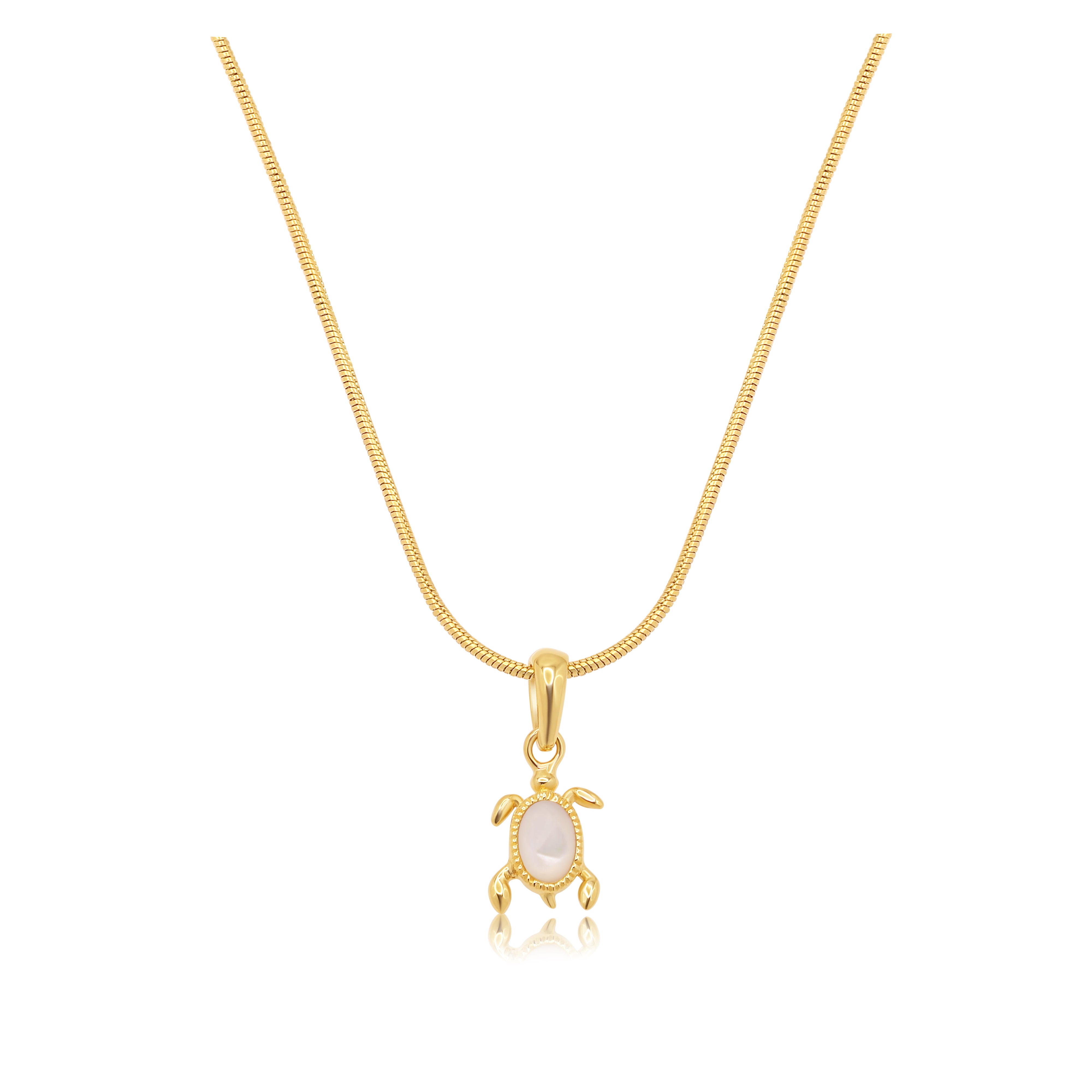 Indulge your love for turtles with our exquisite Sea Turtle Mother of Pearl Necklace in 18K Gold! This stunning piece is a testament to the beauty of the ocean and is a must-have for any ocean enthusiast.