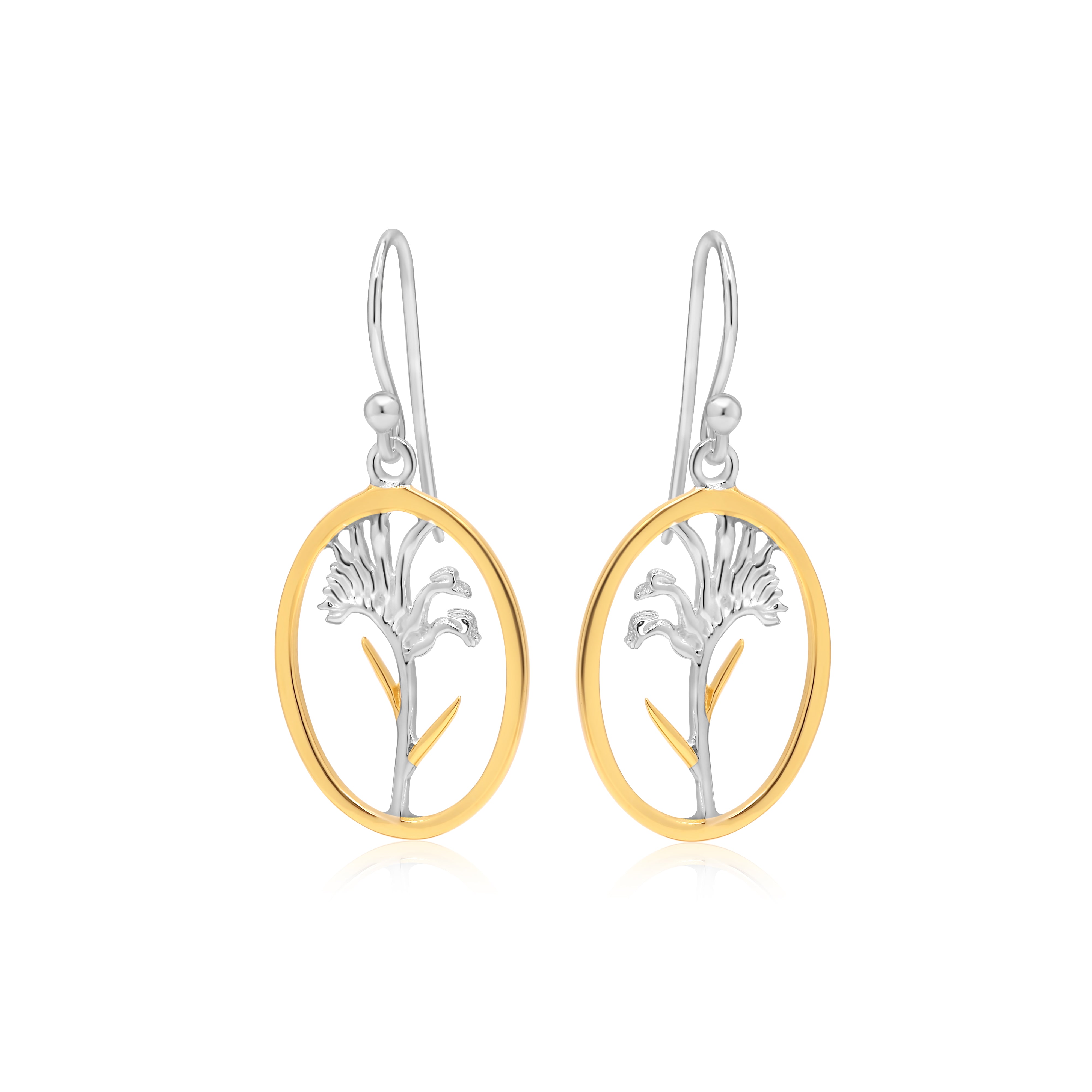 Introducing the Kangaroo Paw Gold Rim Oval Drop, a distinctive and elegant addition to Nicola's renowned Wildflower Collection. These exquisite earrings feature a unique kangaroo paw design accented by a delicate gold rim, adding a touch of sophistication and luxury.