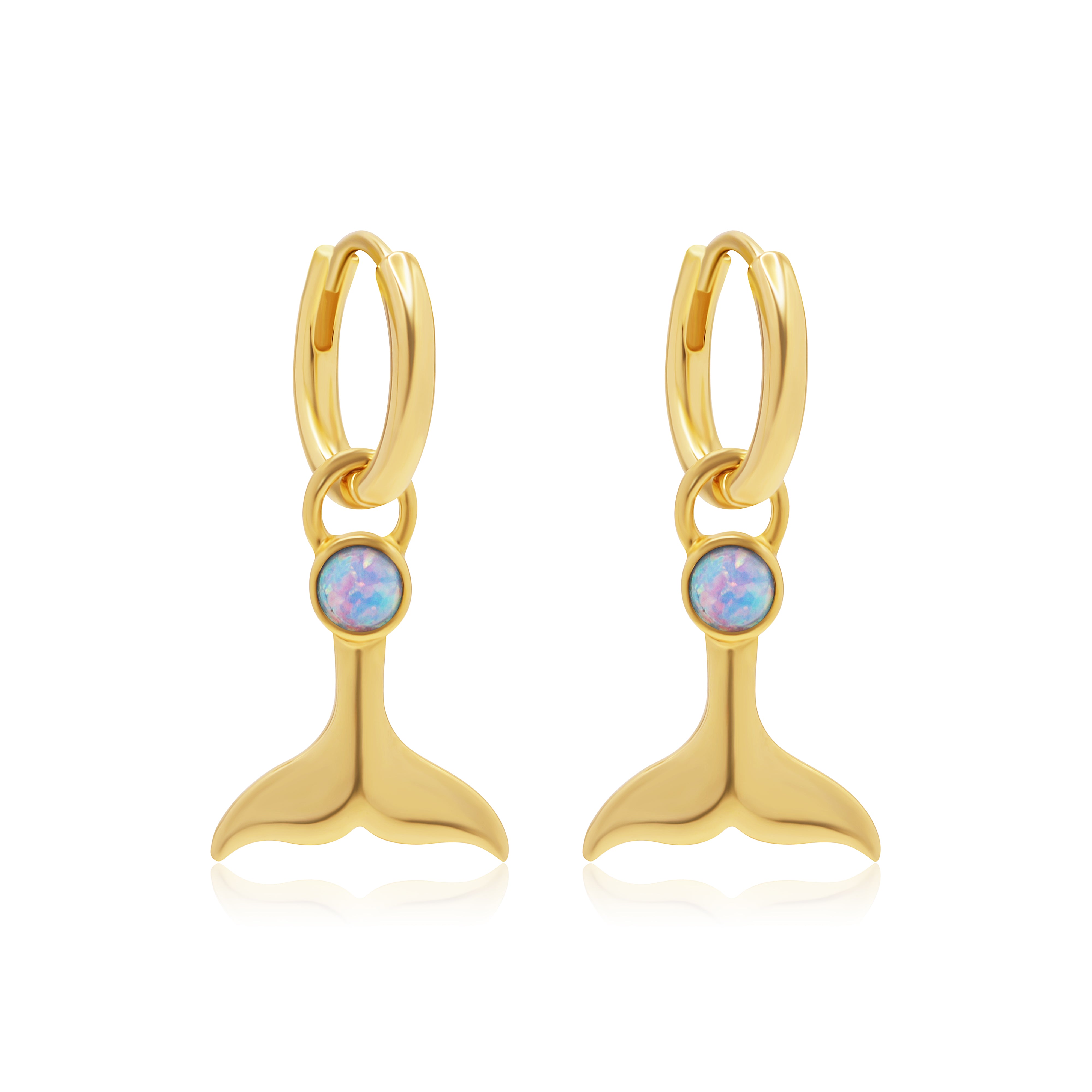 The La Sirene Blue Opal Gold Hoops are made for ocean lovers and whale watchers at heart. Crafted in 18k gold-plated sterling silver, these playful hoops feature a detailed whale tail with dreamy blue opal inlay. The comfy clip-in style means you can wear them all day, from beach hangs to dinner dates. These are your new go-to earrings.
