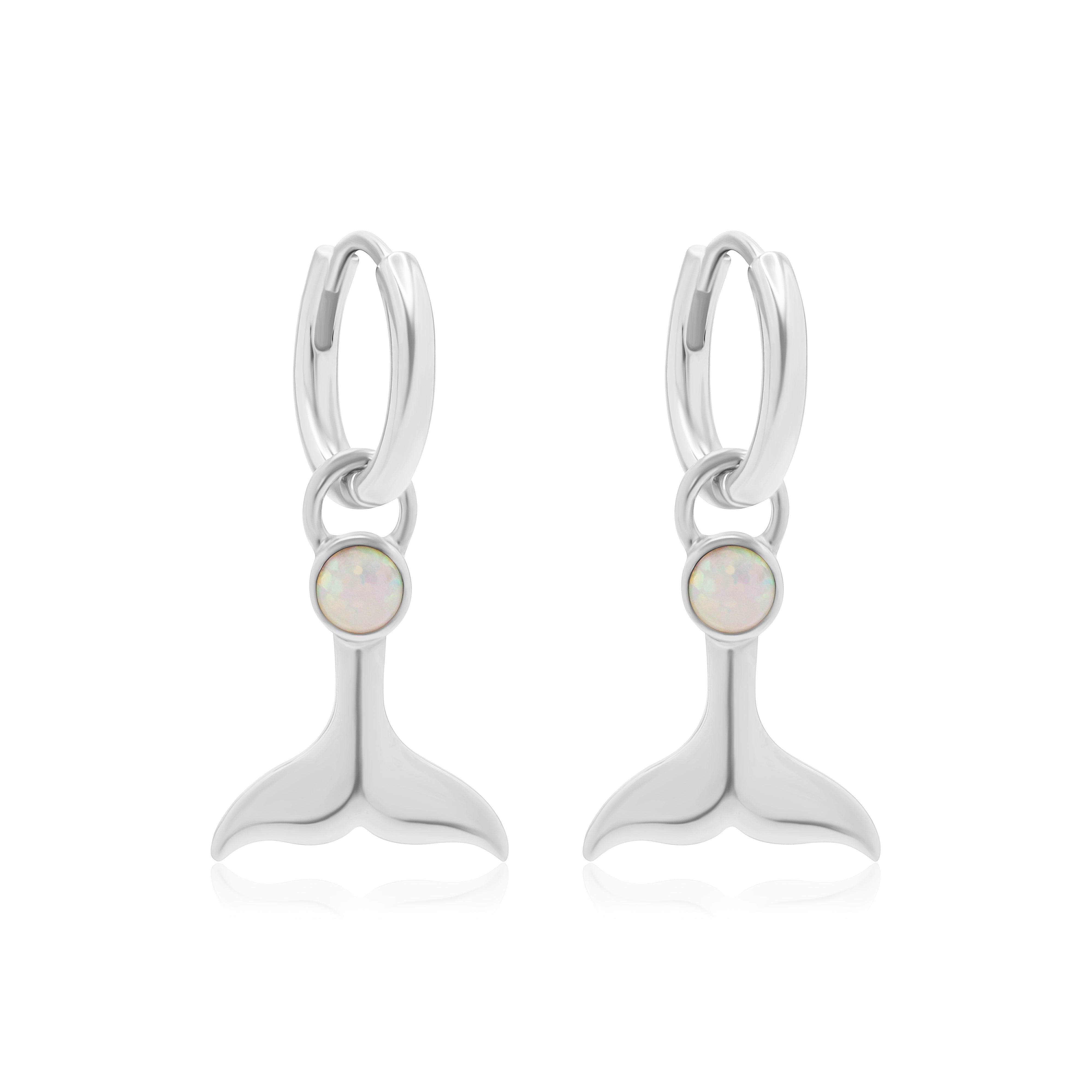 The La Sirene White Opal Silver Hoops are made for ocean lovers and whale watchers at heart. Crafted in sterling silver, these playful hoops feature a detailed whale tail with dreamy white opal inlay. The comfy clip-in style means you can wear them all day, from beach hangs to dinner dates. These are your new go-to earrings.