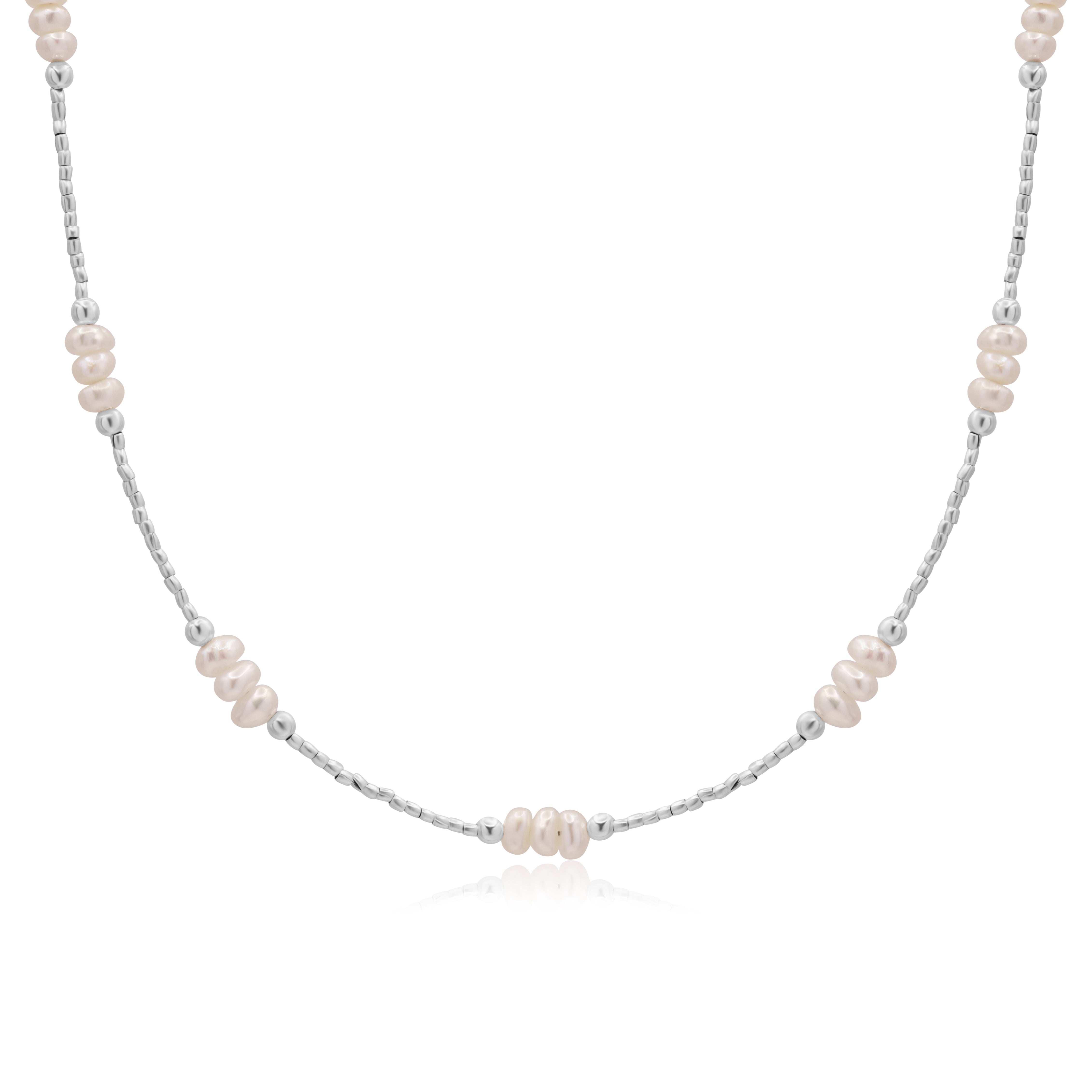 The Layla Necklace embodies effortless coastal elegance. Strung on a durable stainless steel wire, it features three mini freshwater pearls delicately spaced between sterling silver beads. Simple yet beautiful, this necklace is perfect for layering or wearing on its own for a soft, seaside-inspired look.
