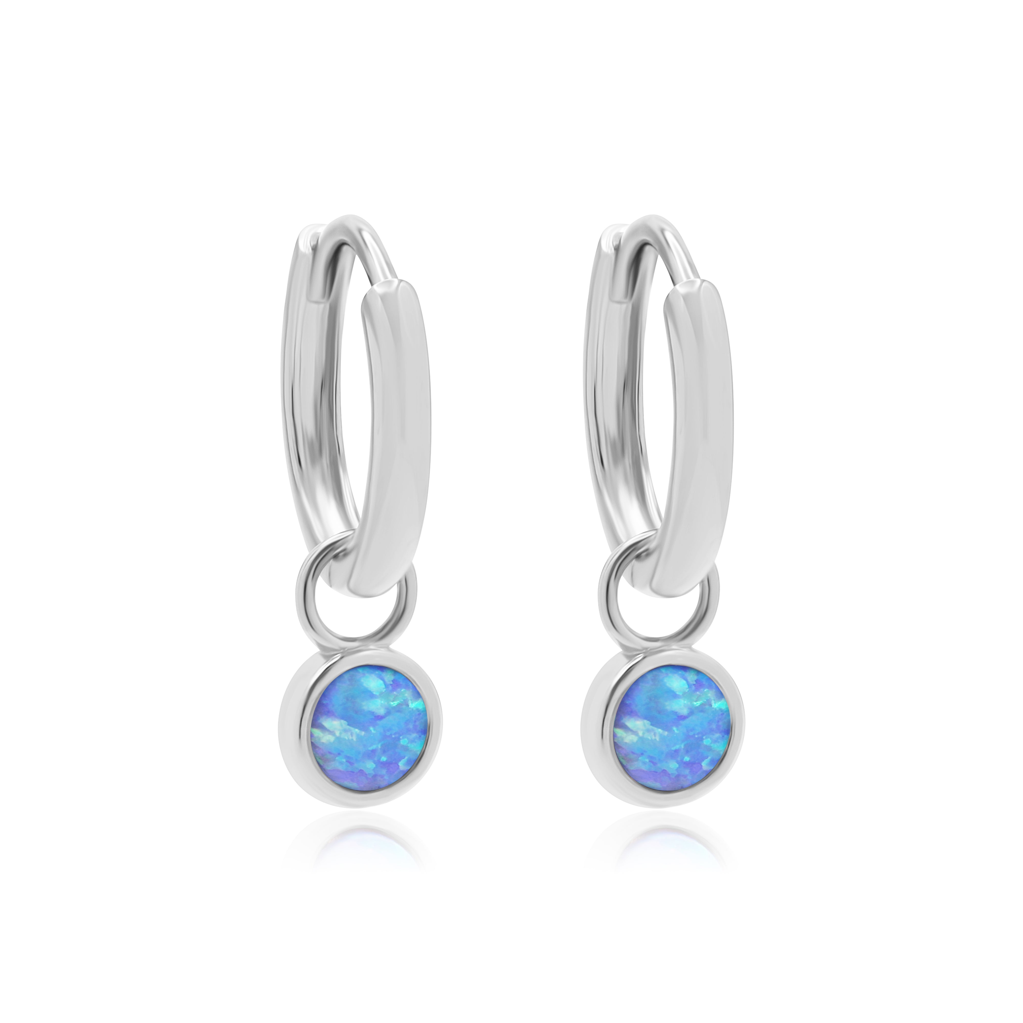 Design: Classic 12mm hoop with 5mm blue opal charm
