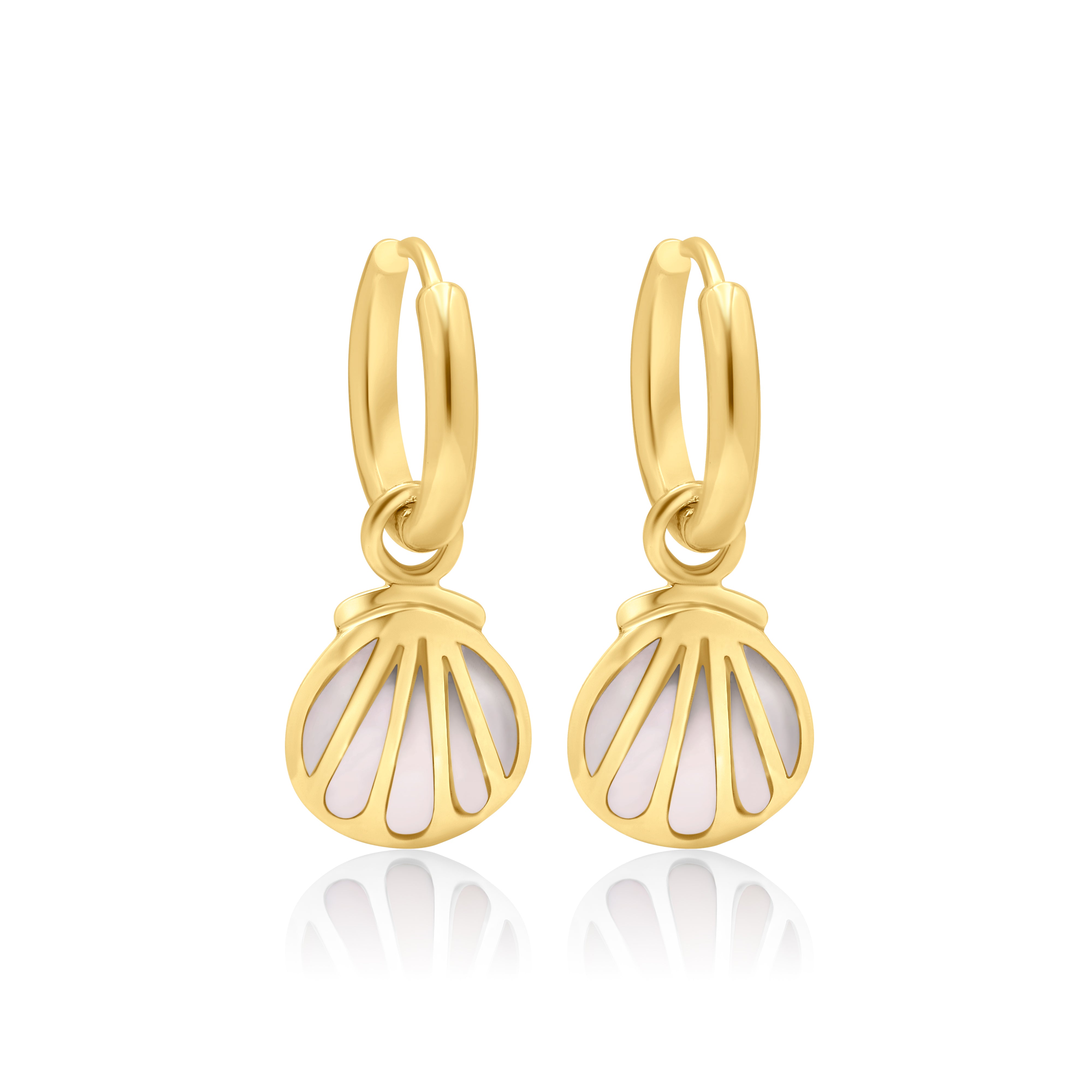 Meet the Mini Lucia Gold Huggie Sterling Silver with plating 18k gold, featuring a delicate shell design with shimmering mother-of-pearl inlay. Click-in clasp for effortless wear. Our best-seller, now redesigned into a smaller huggie—perfect for adding a touch of everyday elegance or stacking.