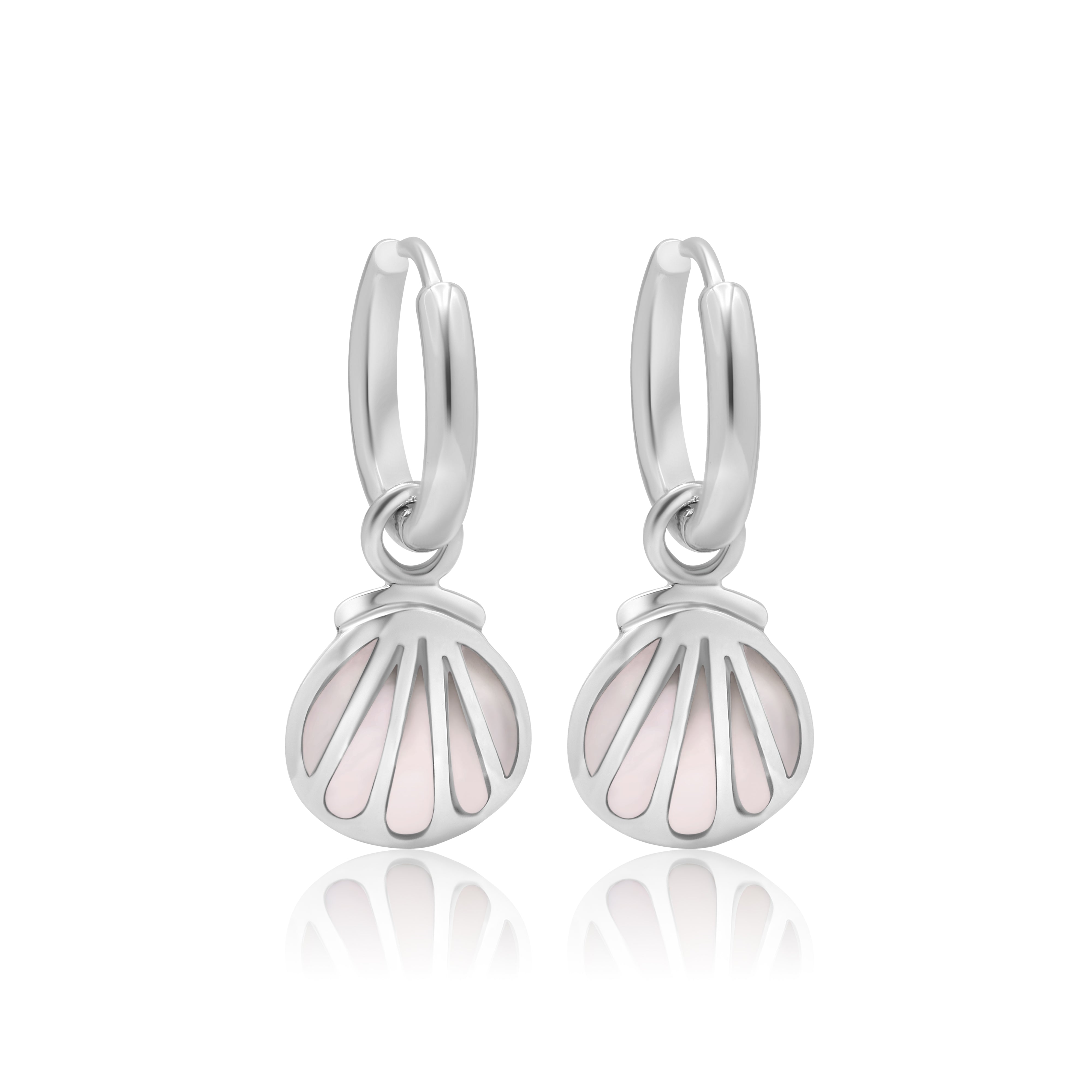 Meet the Mini Lucia Huggie in sterling silver, featuring a delicate shell design with shimmering mother-of-pearl inlay. Click-in clasp for effortless wear. Our best-seller, now redesigned into a smaller huggie earring, solo or layered for a standout ear look.