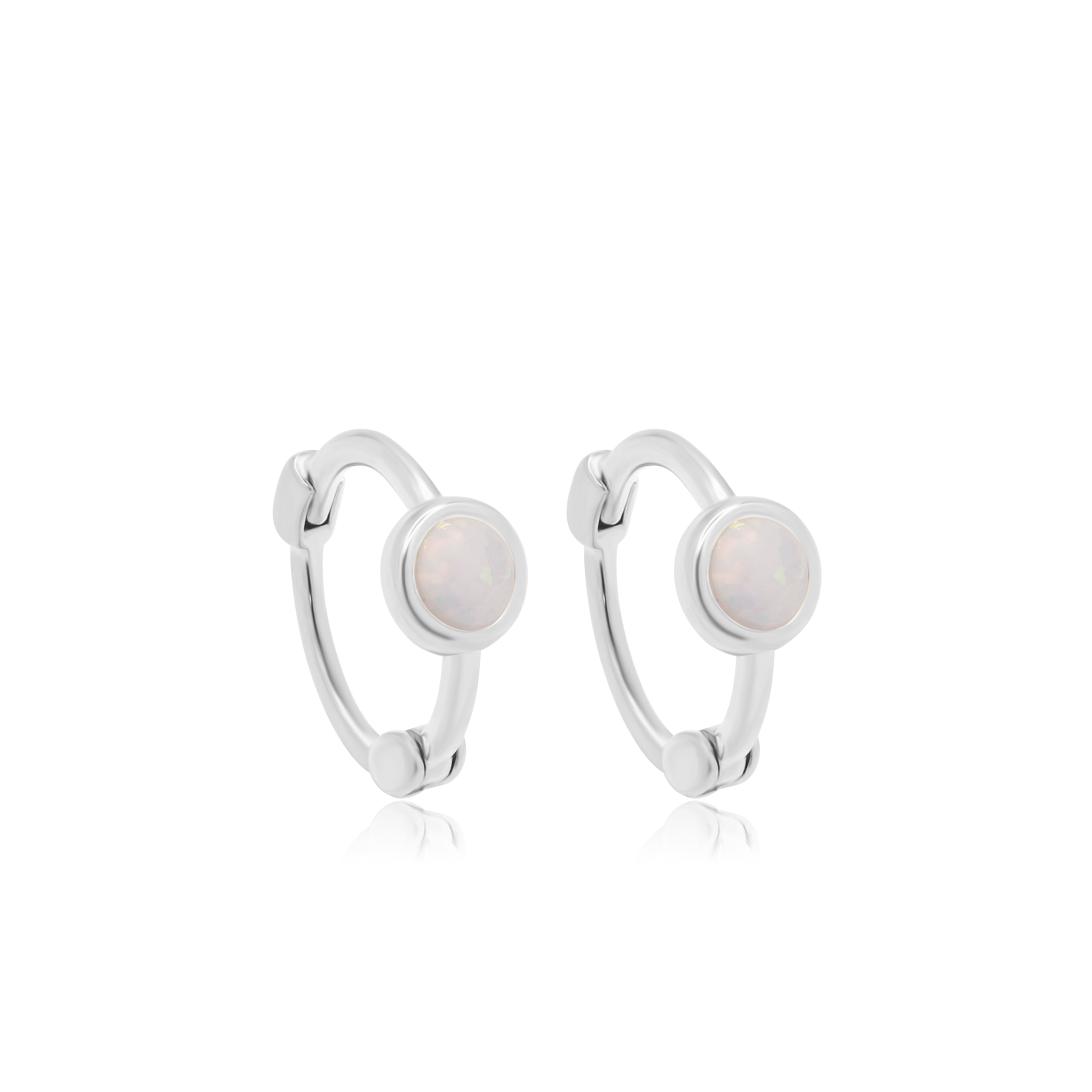 These stunning huggie earrings feature opal stones with a captivating play of white and iridescent colours, exuding a subtle yet enchanting allure. The huggie design ensures a secure and comfortable fit, making them perfect for everyday wear.