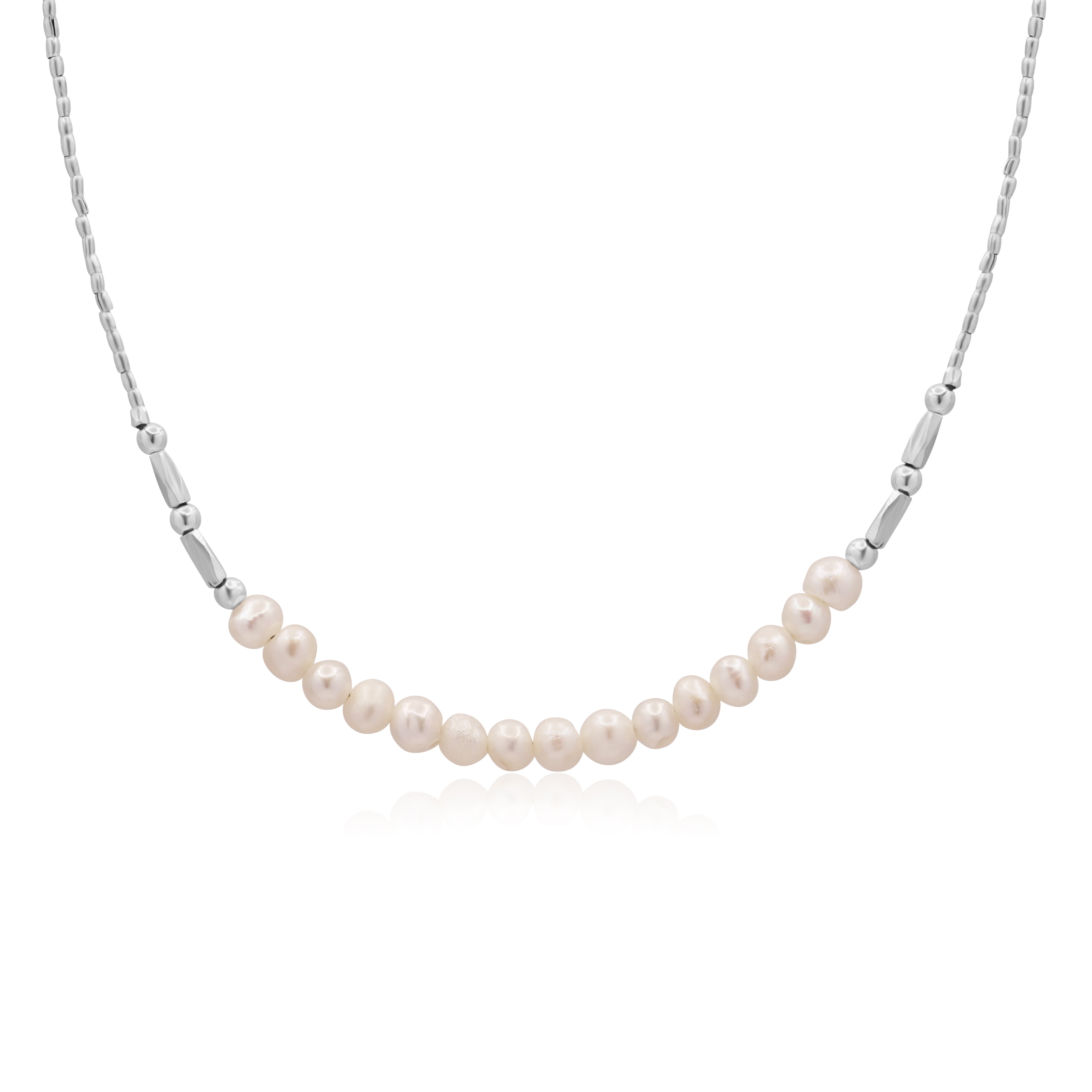 Introducing the Remy Necklace, an essential piece for every beach lover's summer wardrobe. Crafted from sterling silver and adorned with a lustrous freshwater pearl, this necklace combines elegance with a touch of seaside charm.