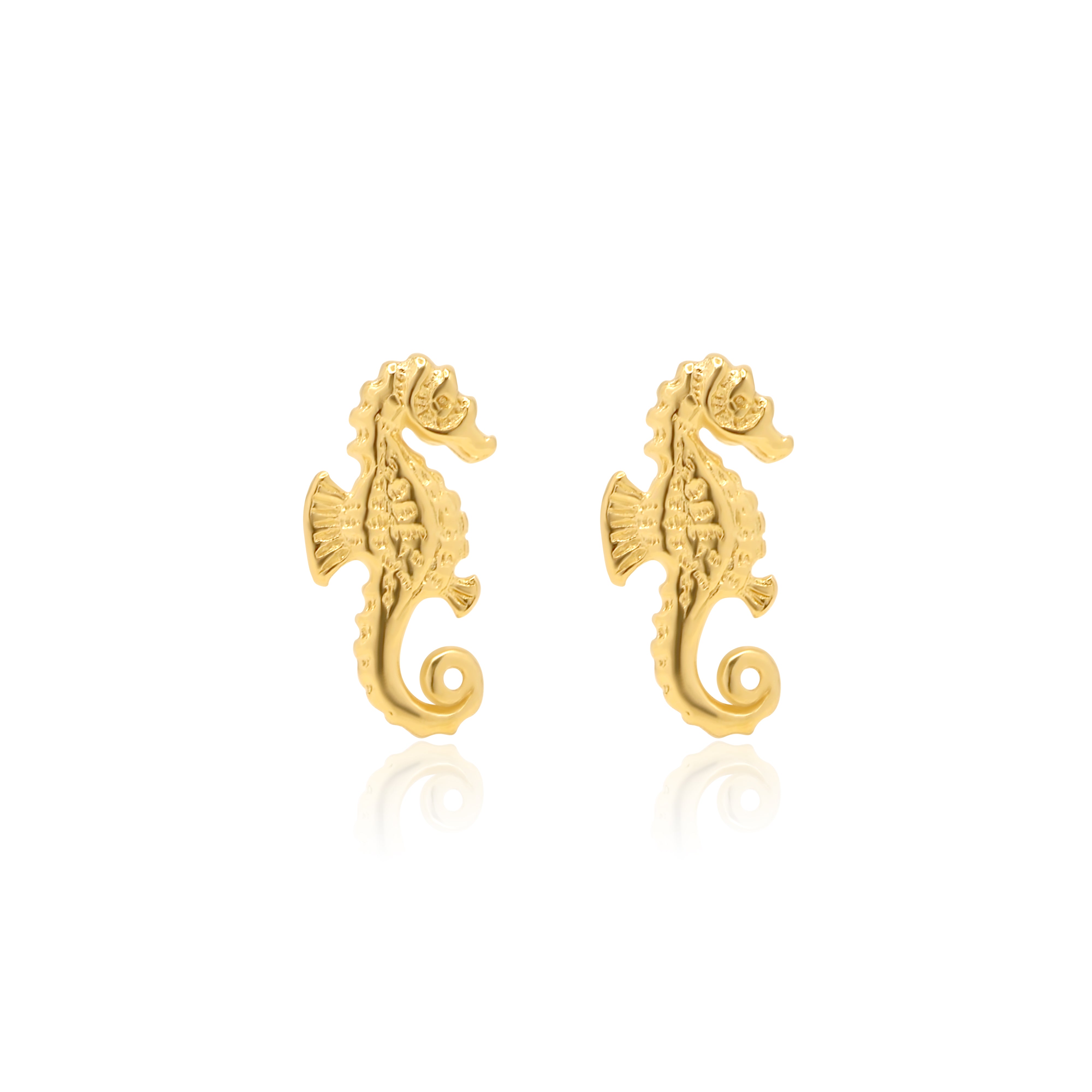Introducing our Seahorse Studs, petite treasures crafted from 18K gold, perfect for adding a touch of whimsy and elegance to your ensemble. These stud earrings feature a charming seahorse design, capturing the grace and uniqueness of these mystical creatures of the sea.