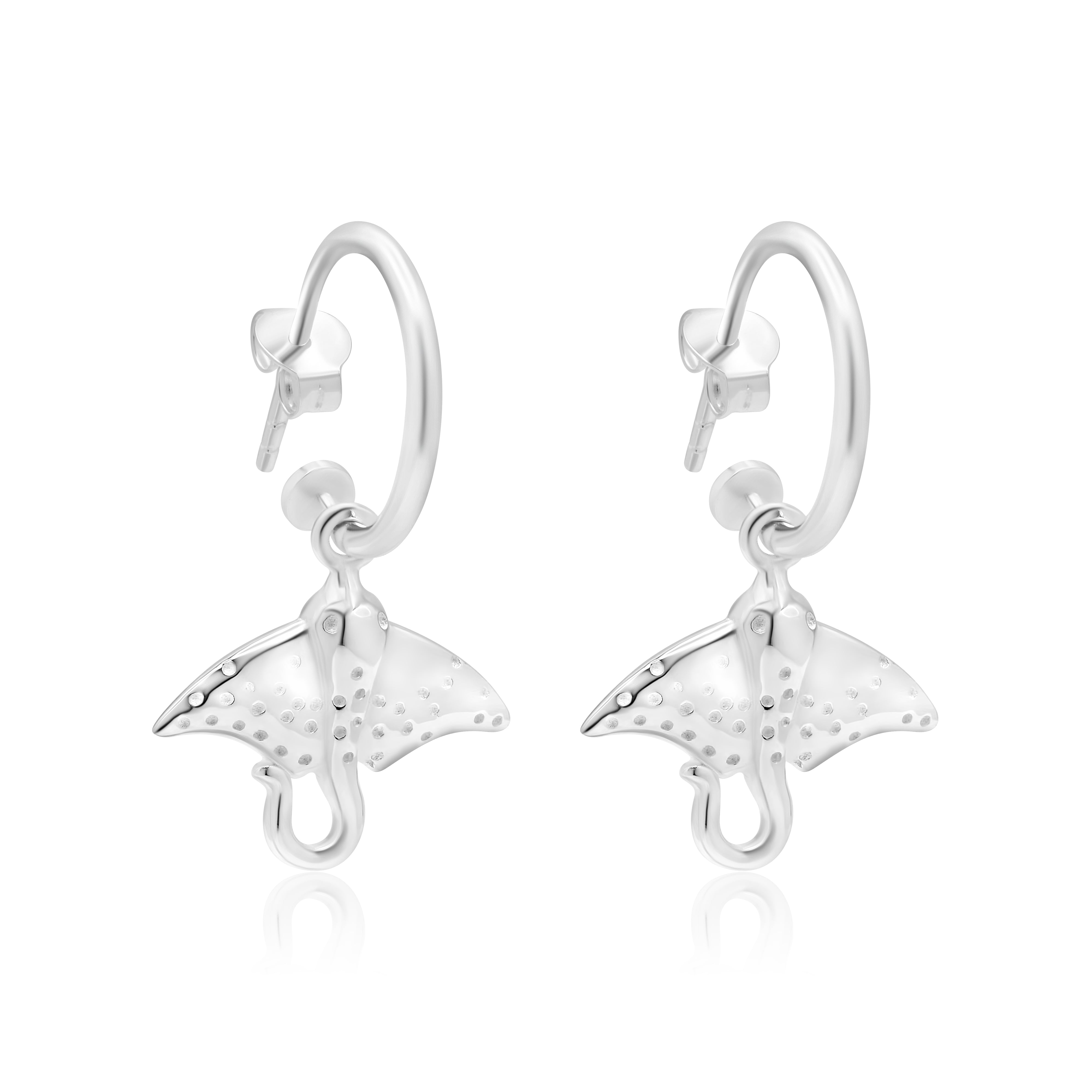 Immerse yourself in the captivating allure of the ocean with our Stingray Hoop Silver earrings, a highlight from our coastal collection. Crafted with intricate detail, these stunning hoops feature delicate stingray motifs in sterling silver, evoking the grace and beauty of marine life. Complete your ocean-inspired look with the matching necklace from our popular series, ensuring a seamless blend of elegance and coastal charm in every ensemble.