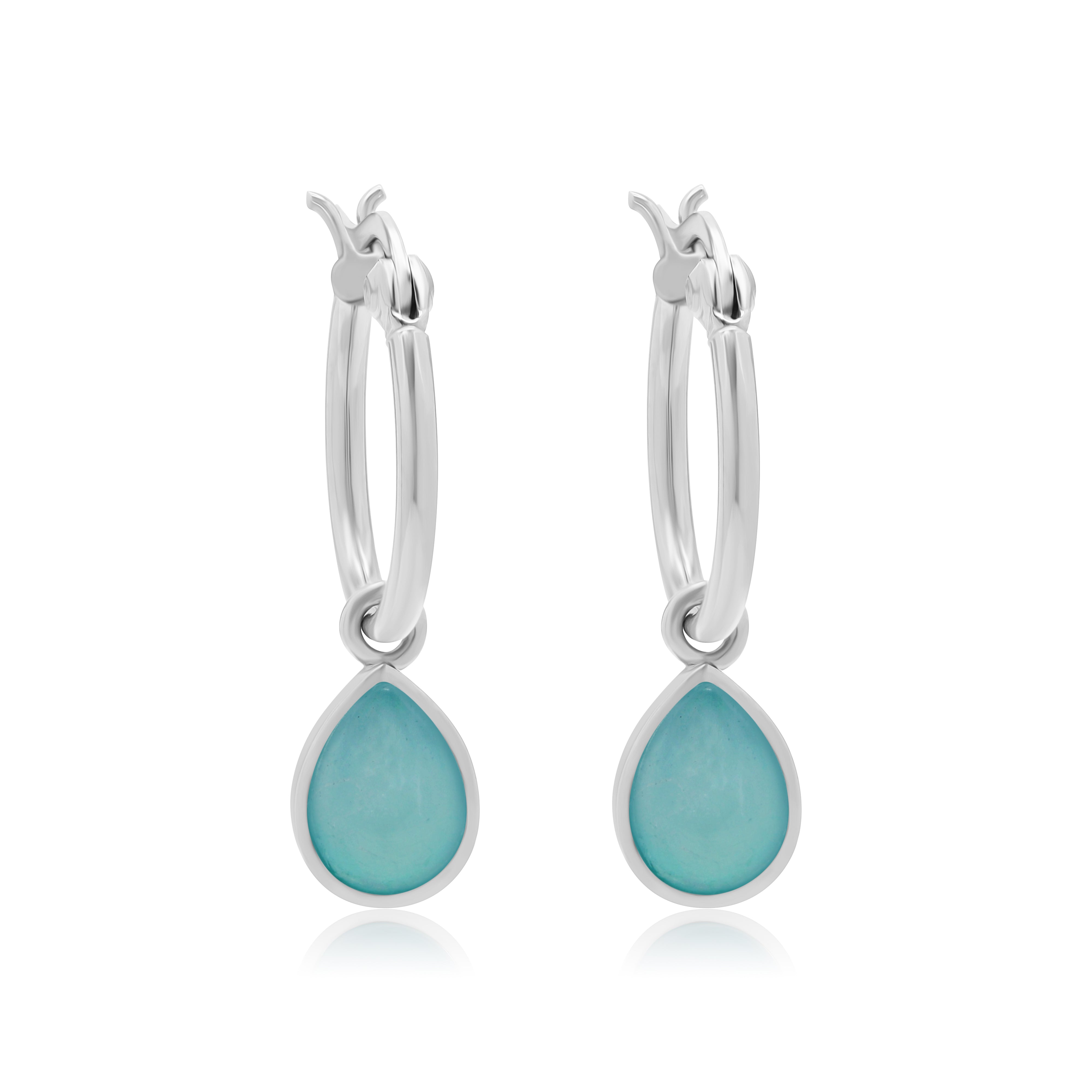 Design: Sterling silver hoops with dangling Chalcedony drops